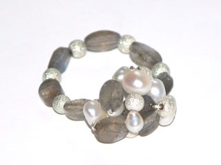 Sterling Silver, freshwater pearls and labradorite ring. Size L.